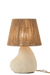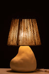 A lovely pebble shaped stoneware table lamp with natural string jute shade that casts a pleasant soft light.